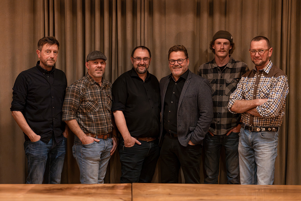 Vorstand von links nach rechts: Christof Risi, Ruedi Arnold, Toni Niederberger (Präsident), Peter Truttmann (Tagespräsident für Gründung Verein), Matiu Berther, Richi Barmettler